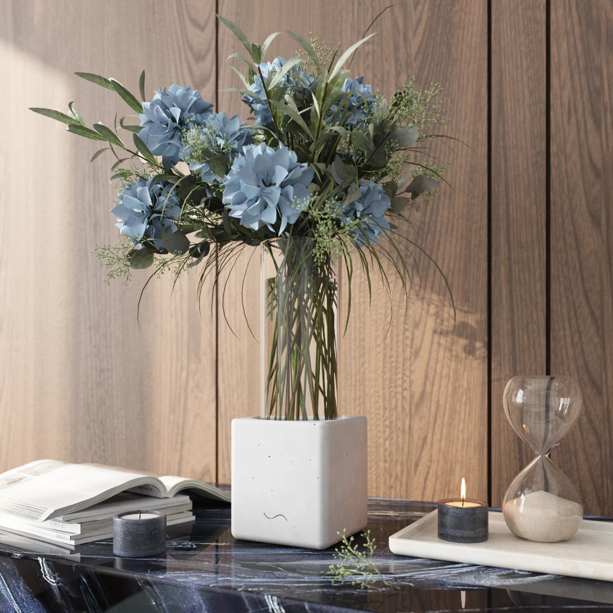 Основа вазы изготовлена из прочного и долговечного архитектурного бетона. Такой материал не только надёжен, но и экологически безопасен. Бетонная подставка покрыта двухкомпонентным лаком, который защищает изделие от влаги, повреждений и загрязнений.