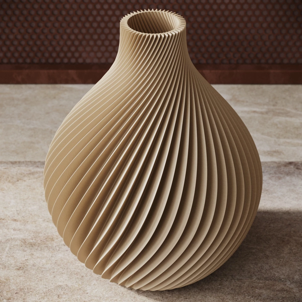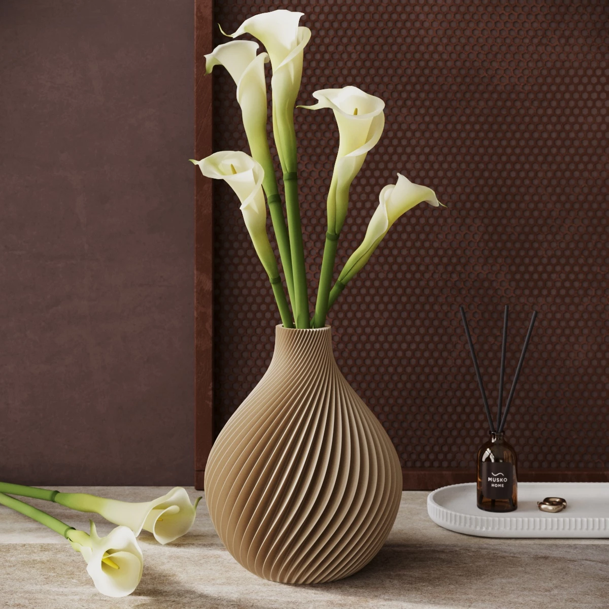 Ваза изготовлена из PETG-полимера, обладает невероятными прочностью, долговечностью и имеет приятную на ощупь рифлёную матовую текстуру.